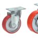 Большегрузные обрезиненные колеса отлиты из чугуна и покрыты защитным слоем лака. В оси колеса роликовый подшипник, для смазки подшипника имеется ниппель. Шинка изготовлена из полуэластичной полиуретана красного цвета. Оцинкованные кронштейны колес сварные, толщина стали 6 мм. Крепление — платформенная площадка под четыре болта. Колесные опоры этой серии широко применяются внутри помещений с грубыми полами, на складах, заводах и т.д. Их можно использовать на неровных поверхностях с препятствиями, во влажной окружающей среде при наличии средних по активности химических веществ, а также вне помещений. Колеса неприхотливы и устанавливаются на большегрузную складскую и строительную технику, электротранспортеры, полотеры и т.д. Рабочая температура от -35°С до +60°С.