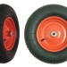 Колесо с пневматической шинкой применяется для установки на строительные и садовые тачки, а также на тележки- тачки с платформой и двухколесные тачки. Пневматические колеса для строительных и садовых тачек служат основой для транспортных конструкций, осуществляющих перевозку груза как внутри помещений, так и вне зданий. Отличительной особенностью пневматических колес для тачек и тележек является возможность перемещения по неровным поверхностям пола и таким основам как земля и песчаный грунт. Для пневматических колес от тачек и тележек пороги дверей, различные ямки, канавки и рельсы не являются непреодолимым препятствием на пути. Влага и среда средней химической агрессивности не являются помехой для исправной работы пневматических колес для тачек и тележек. Пневматические колеса при движении не издают шумов, поддаются коррозии, мягко преодолевают препятствия в виде порогов, невысоких ступеней, а ход их отличается плавностью и мягкостью, что оставляет перевозимые грузы целыми и невредимыми. Боятся острых предметов на пути движения, рабочая температура от -20°С до +50°С.